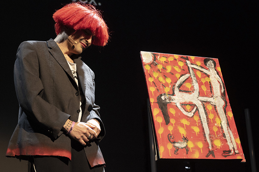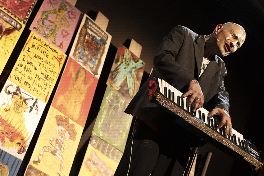 Seit vielen Jahren hypnotisiert Ivo Dimchev das Publikum mit seinem satten Bariton und den melancholisch-dreckigen Texten. Gleichzeitig stellt er sich nie einfach nur auf die Bühne – immer wieder fordert er sein zurückgelehntes Publikum heraus, tritt in direkten Dialog, will wissen, wer da vor ihm sitzt. So auch in seiner neuesten Arbeit »METCH«, einem interaktiven Solo, in dem Dimchev eigene Theatertexte, Songs und Malereien zusammenführt, auf der Suche nach neuartigen Verflechtungen zwischen seinen künstlerischen Obsessionen. Das zeigt sich bereits im Titel: »METCH« steht für Music, Exhibition, Text und Choreography (Musik, Ausstellung, Text und Choreografie). Unverkennbar wie unwiderstehlich schillert auch in dieser Performance seine einzigartige Mixtur aus Anarchie und Zartheit.